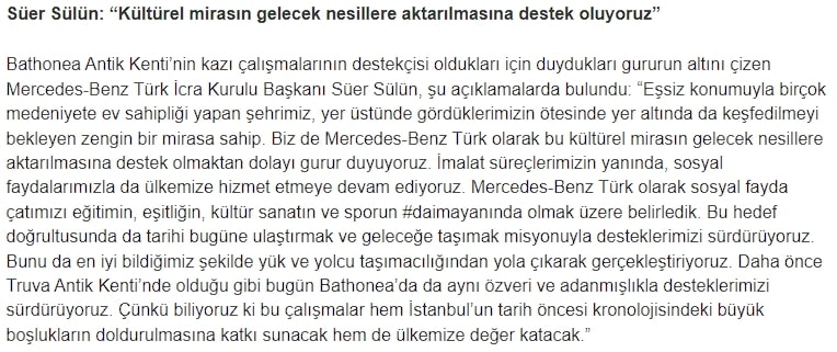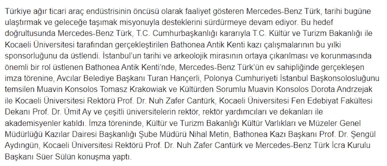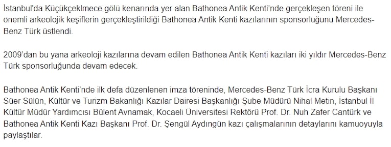 Ana sayfa Haberler Bathonea Antik Kenti Arkeoloji Kazılarının Sponsoru Mercedes-Benz Türk Oldu