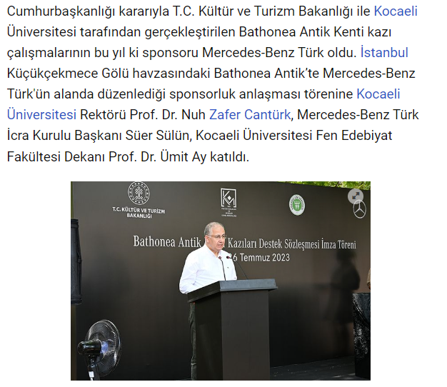 KOÜ’ye ait Bathonea Kazılarının Sponsoru Mercedes-Benz Türk OlduHaberin kaynağına ulaşmak için tıklayınız.